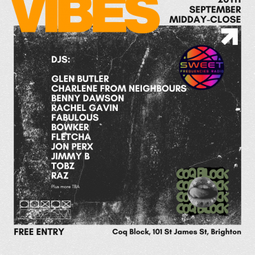 20 Sep 2025 Coq Block — Brighton VIBES Glen Butler, Charlene From Neighbours, Benny Dawson, Jimmy B, Fabulous, Tobz, Raz, Bowker, Jon Perx, Fletcha, Rachel Gavin More info